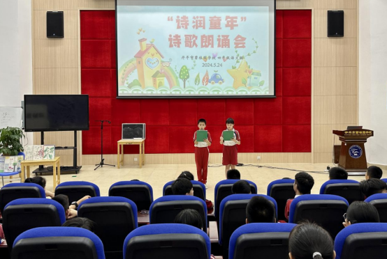 5月23日,我校四年级举行“诗润童年”诗歌朗诵会活动。