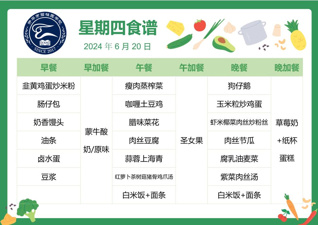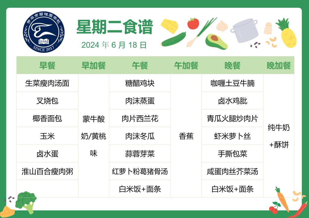 开平市碧桂园学校第十八周学生菜谱
