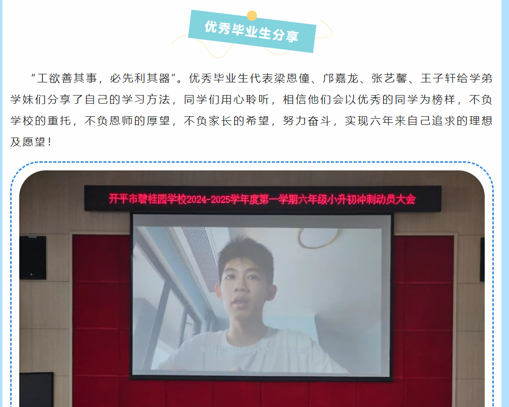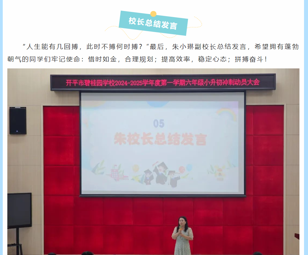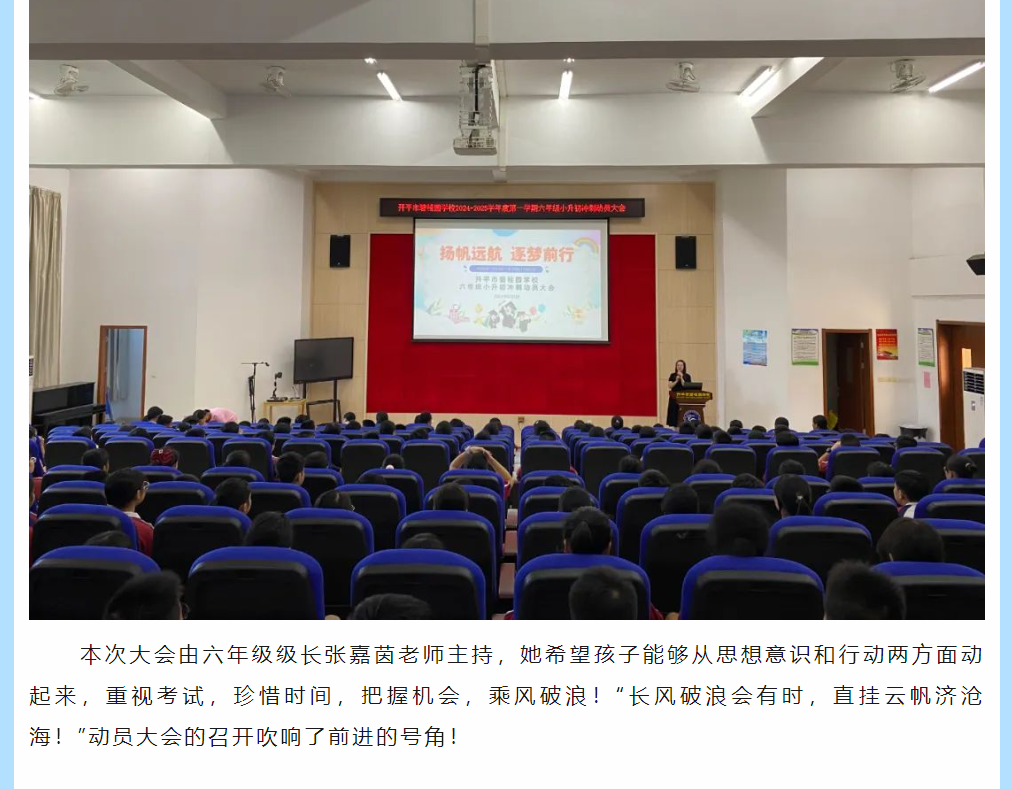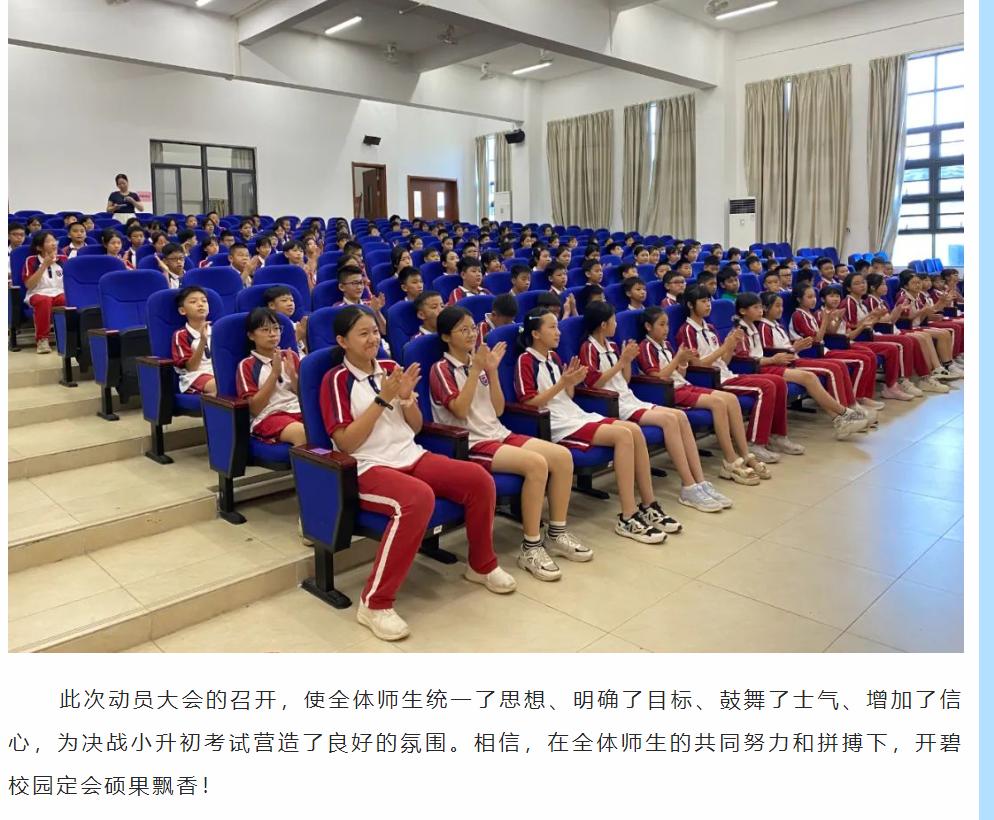 莘莘学子志凌云,铮铮誓言激云霄——开平市碧桂园学校六年级组小升初择校考动员大会