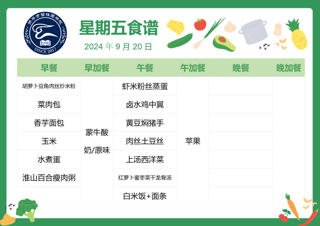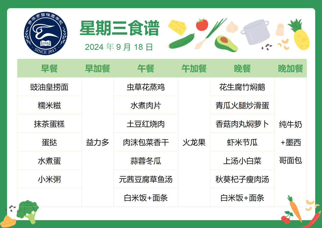 开平市碧桂园学校第三周自助餐食谱
