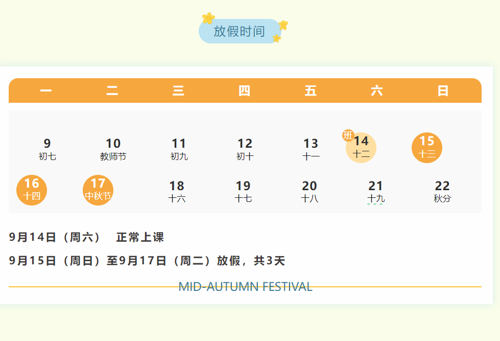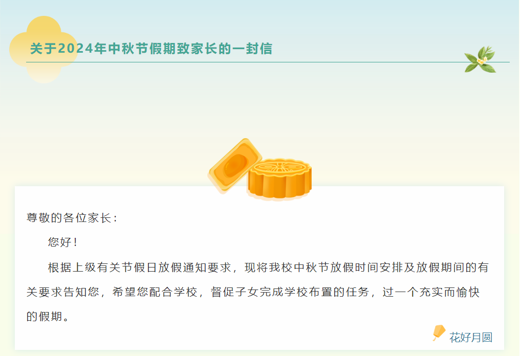 开平市碧桂园学校关于2024年中秋节假期致家长的一封信