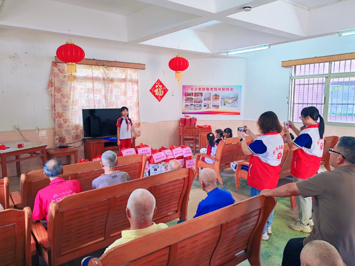 金秋十月爽,九九话重阳。重阳节作为中国的传统节日,有着悠久的历史和深厚的文化内涵。为了弘扬中华民族敬老爱老的传统美德,培养学生敬老爱老的情感,在今日这个充满爱与温暖的节日里,我校组织师生代表及家长代表到开平市长沙街道家龄敬老院开展敬老慰问活动。