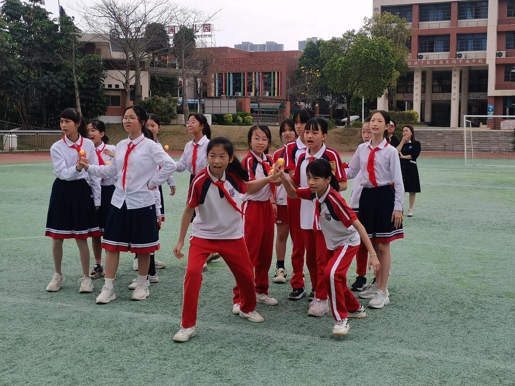 开平市杨明名师工作室的黄丹丹老师在操场上给五年级的孩子们上了一节心理团辅课,一开始的“桃花朵朵开”抱团游戏考验的不仅仅是体力、反应能力,还有团队意识。接下来的“按摩操”,孩子们认真地听着指令,跟着老师大声地喊:“拍拍你的肩,快乐似神仙”;“捶捶你的背,成绩翻一倍”。而在“一圈到底⭕”活动中,同学们手拉手,大声喊着加油助力。呼啦圈在孩子们紧握的双手中传递,不仅传递着友情,也传递着快乐。接下来的传篮球游戏和指尖顶球接龙游戏更是让大家在活动中提高了对团结友爱、合作共赢的认识,增强了团体活动的协作技巧与能力,为今后的学习和生活起到良好的导向作用。