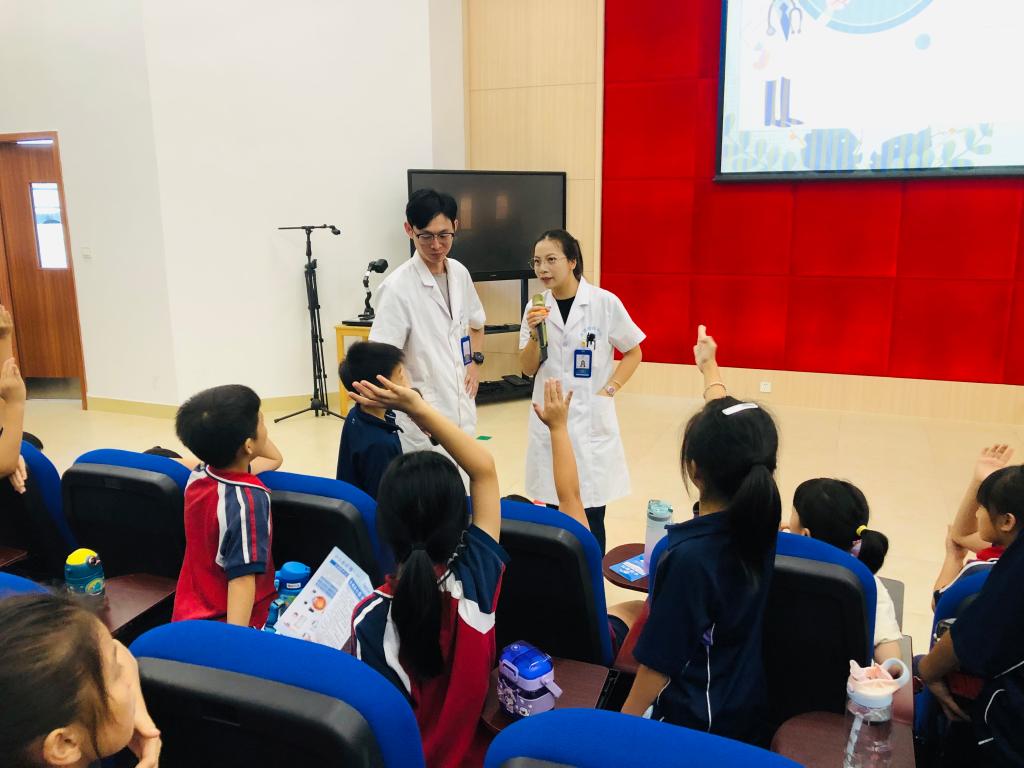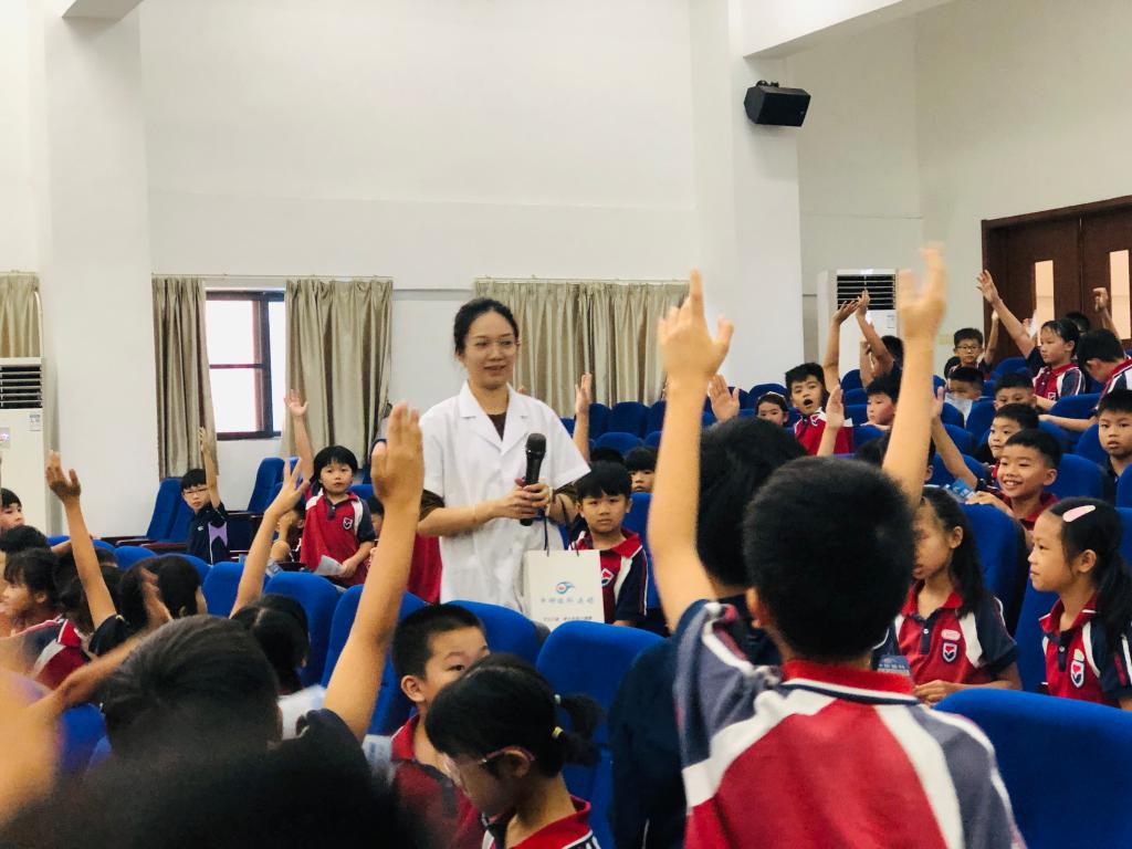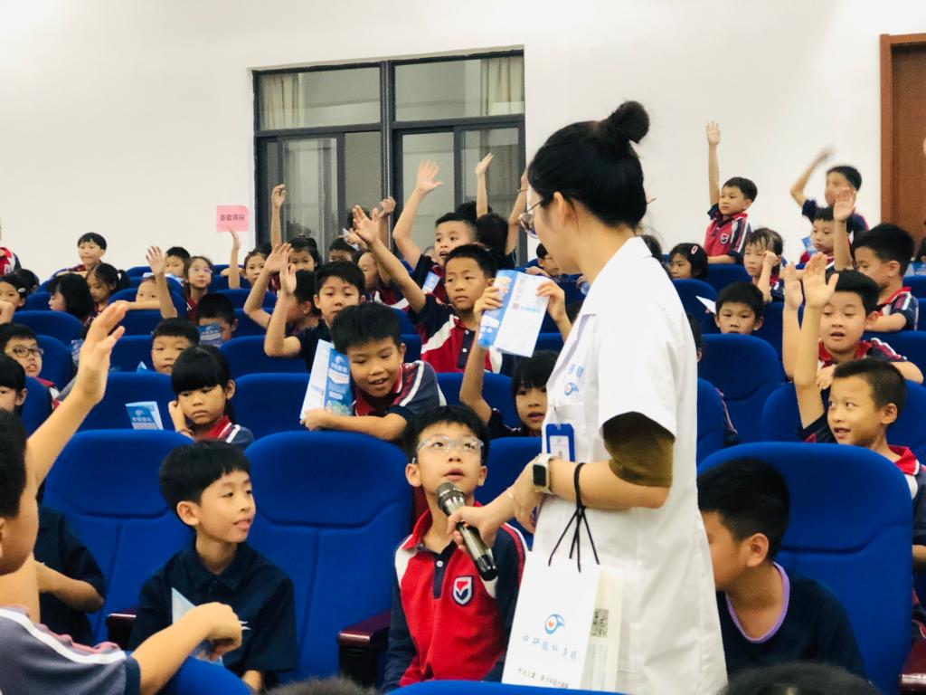 在互动知识抢答环节中,医生用心准备小奖品,同学们争先恐后举手回答问题,令原本晦涩难懂的科普知识变得易懂易掌握,现场气氛活跃,掌声不断。