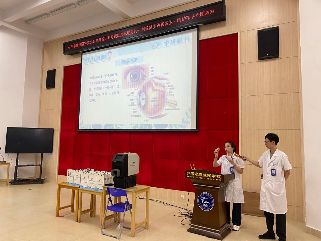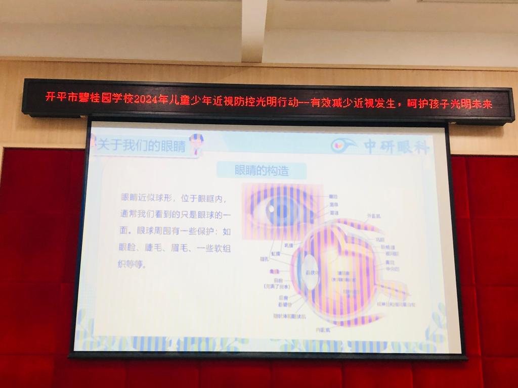 为营造近视防控宣传教育氛围,进一步增强学生的爱眼护眼意识,帮助学生养成科学的用眼护眼习惯,9月29日下午,我校邀请中研眼科的医生为学生进行爱眼护眼科普讲座。