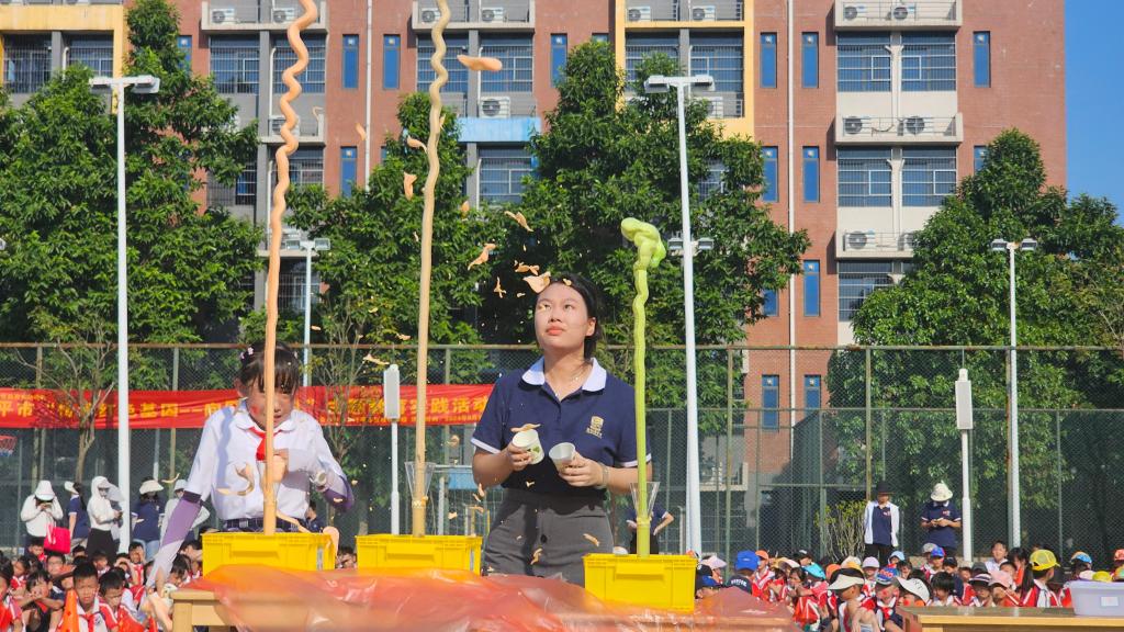 刘欣老师带来的《趣味空气炮》,向孩子们展示空气的力量,让孩子们感受科学的奇妙。