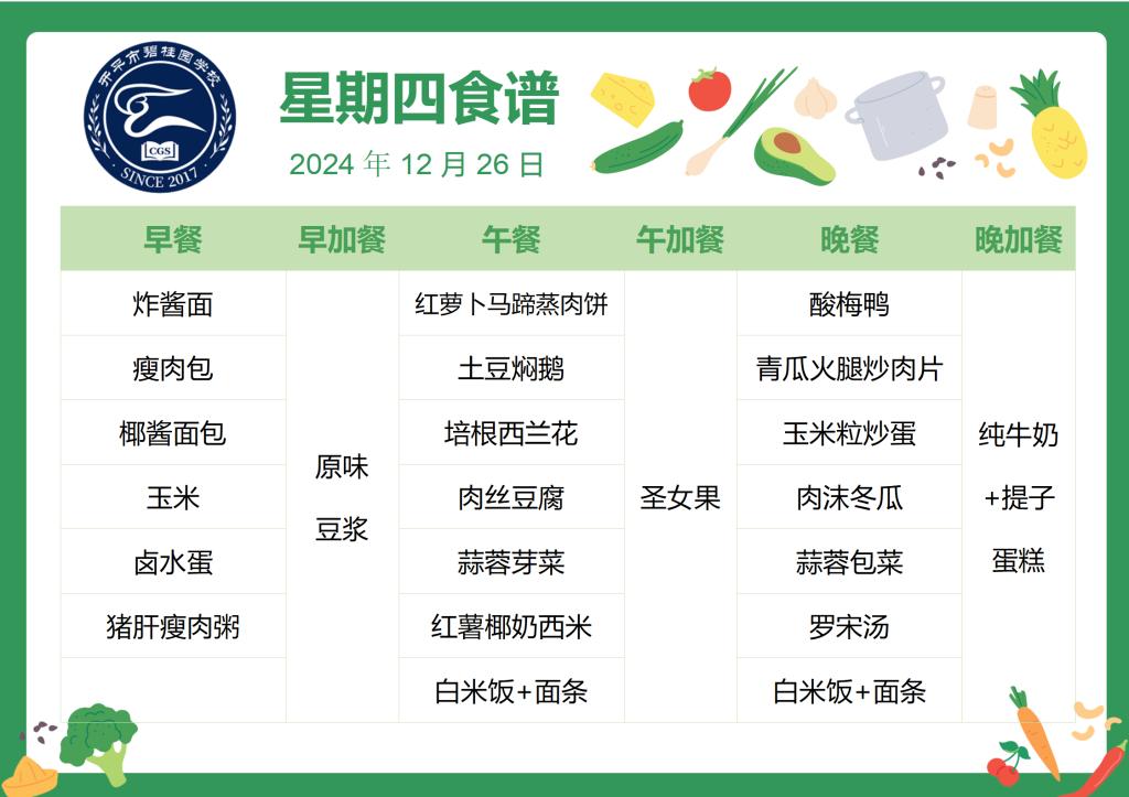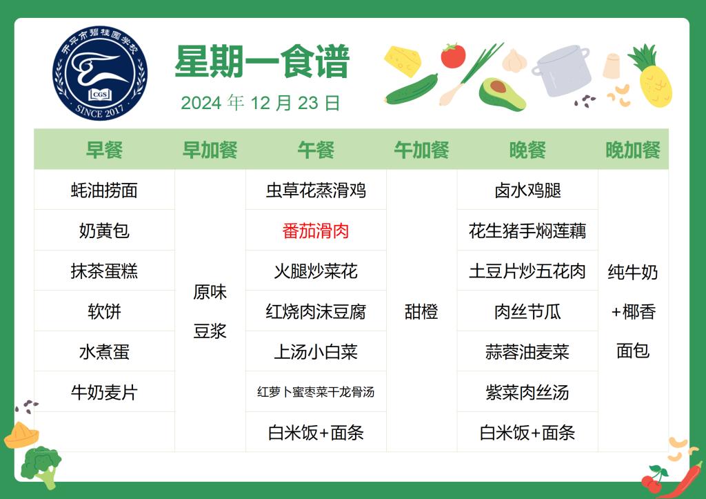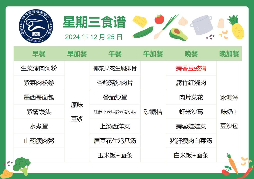2024-2025第一学期第十七周菜谱