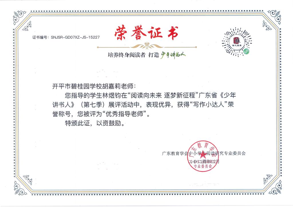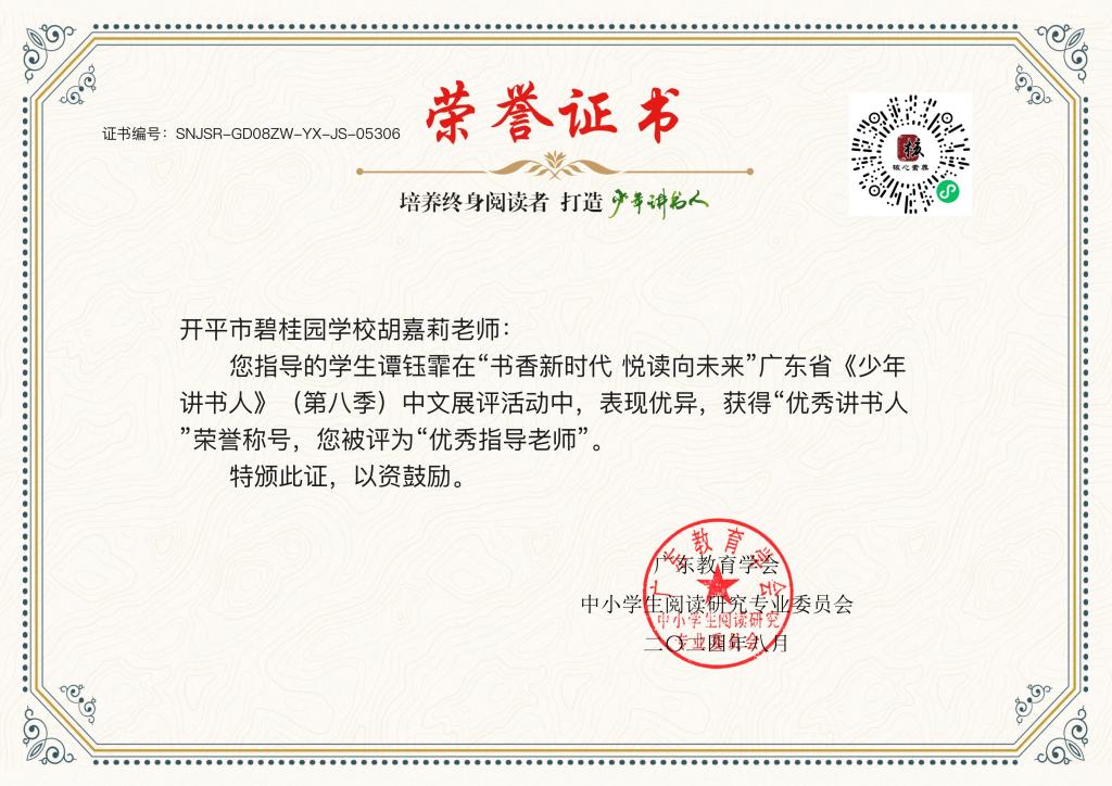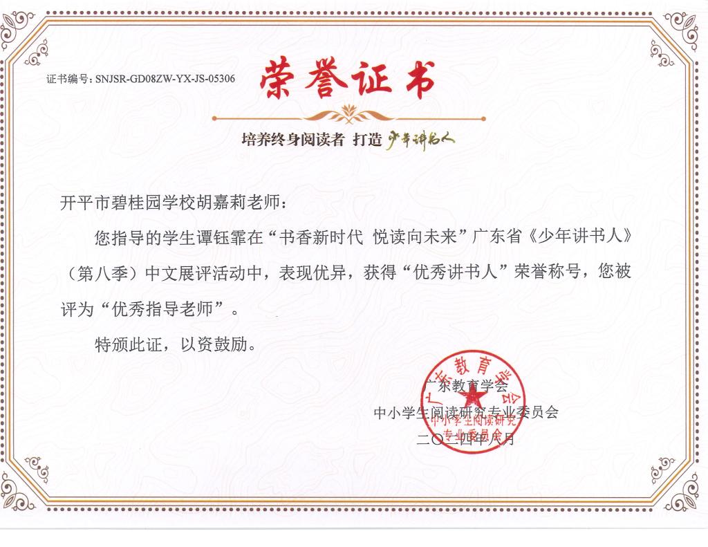 优秀讲书人 谭钰霏 优秀指导老师:胡嘉莉