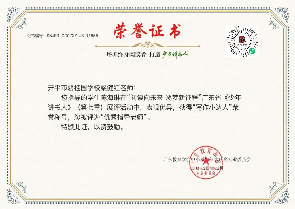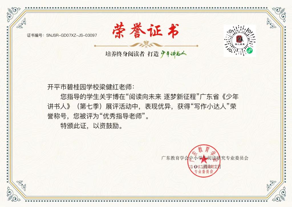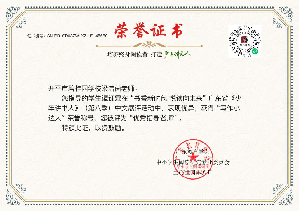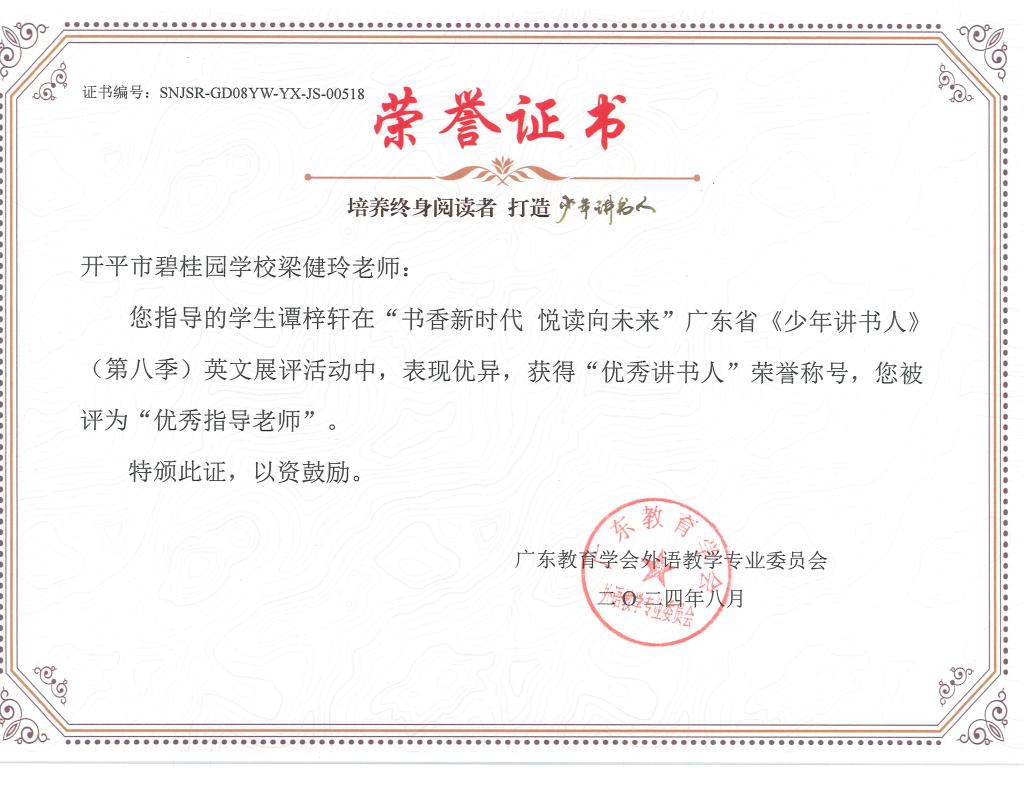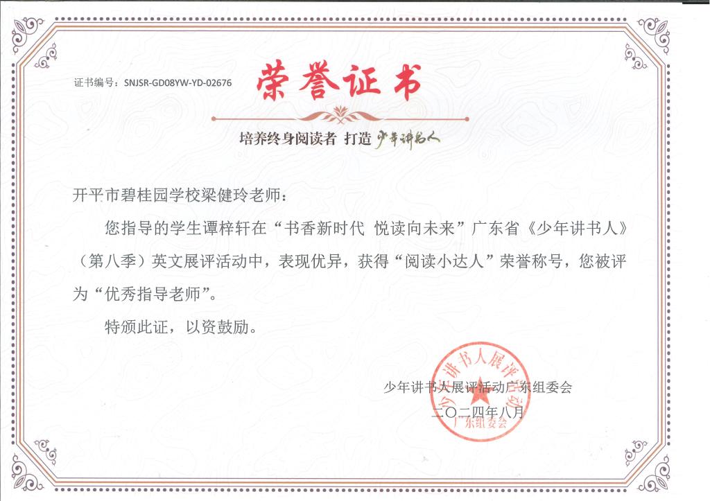 优秀讲书人 谭梓轩 优秀指导老师:梁健铃