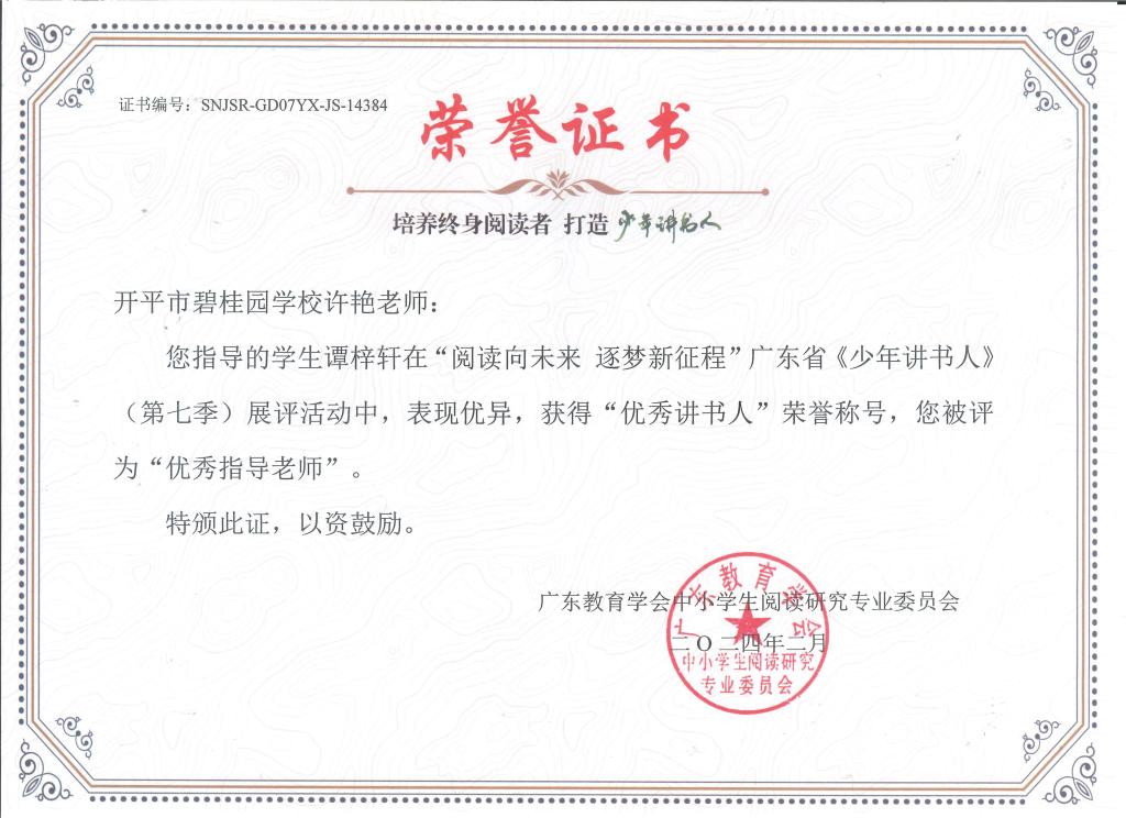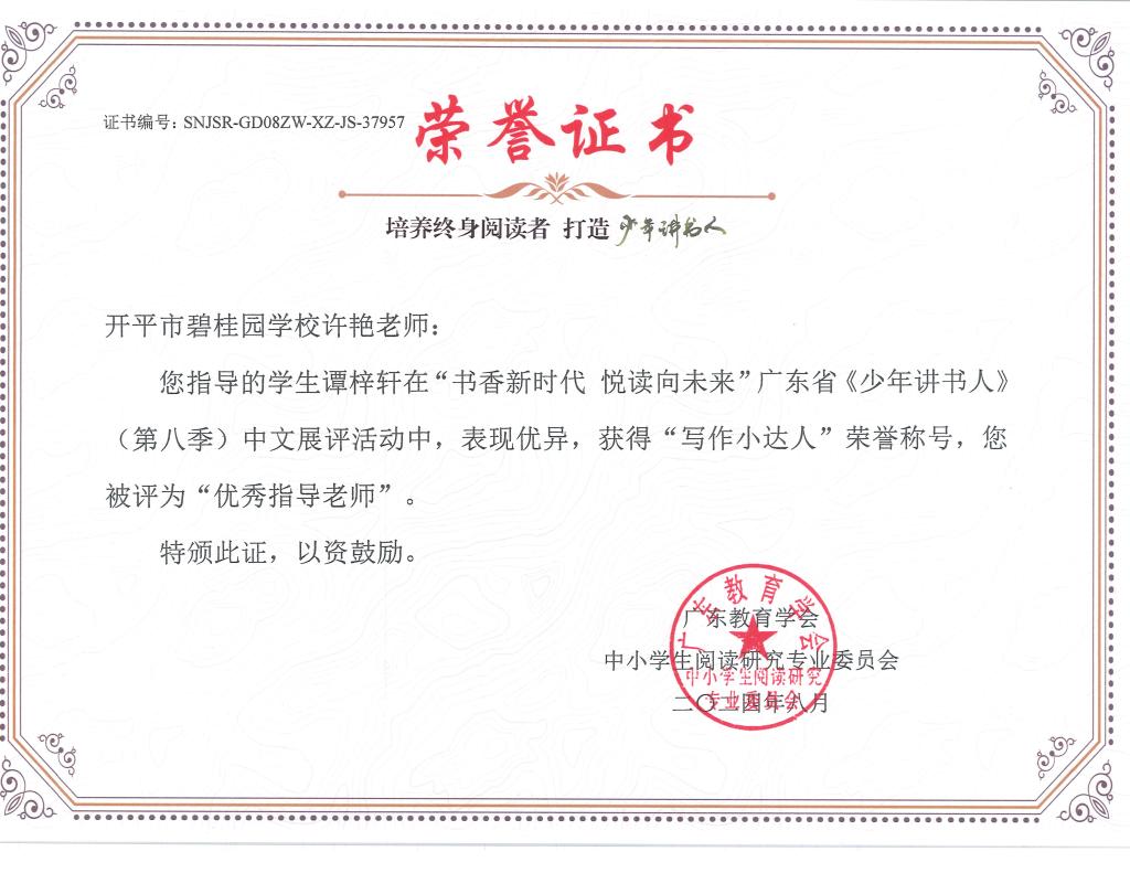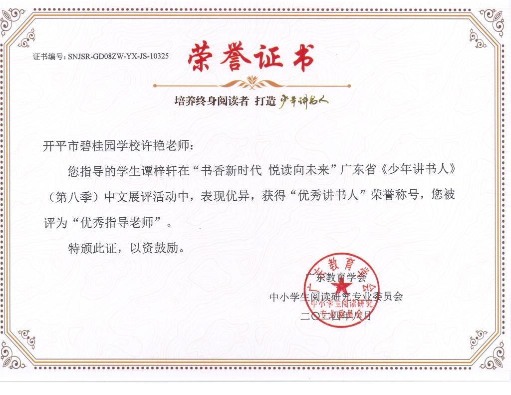 优秀讲书人 谭梓轩 优秀指导老师:许艳
