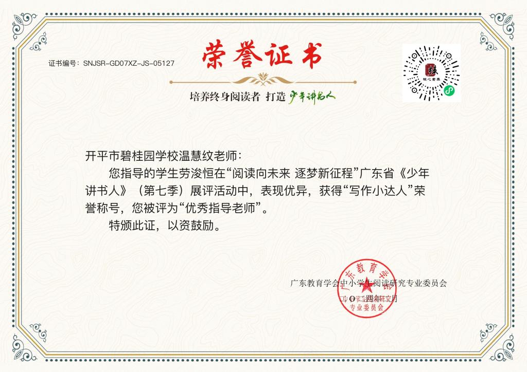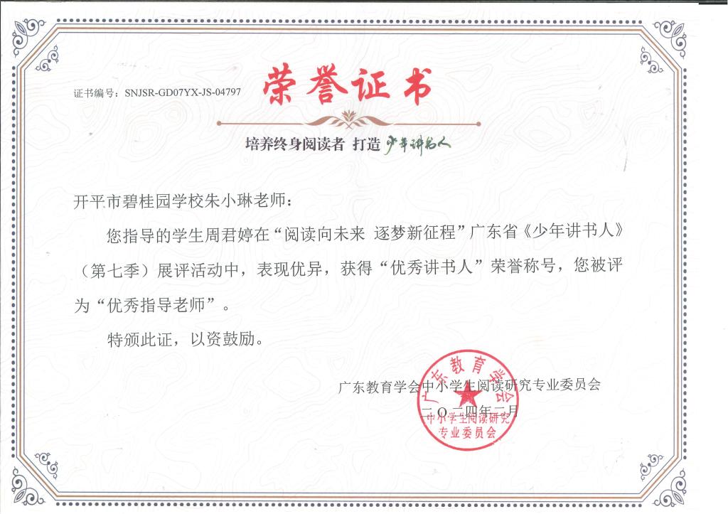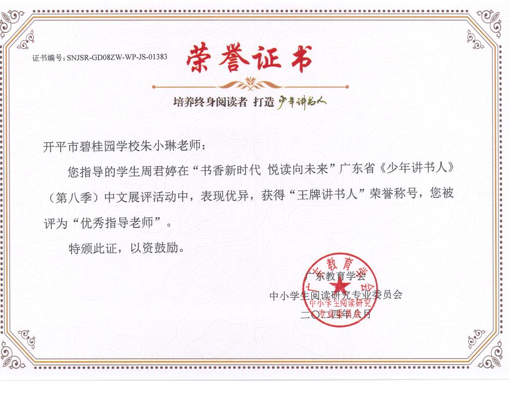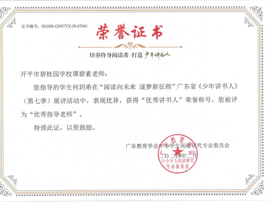 优秀讲书人 谭钰霖 优秀指导老师:梁洁茵