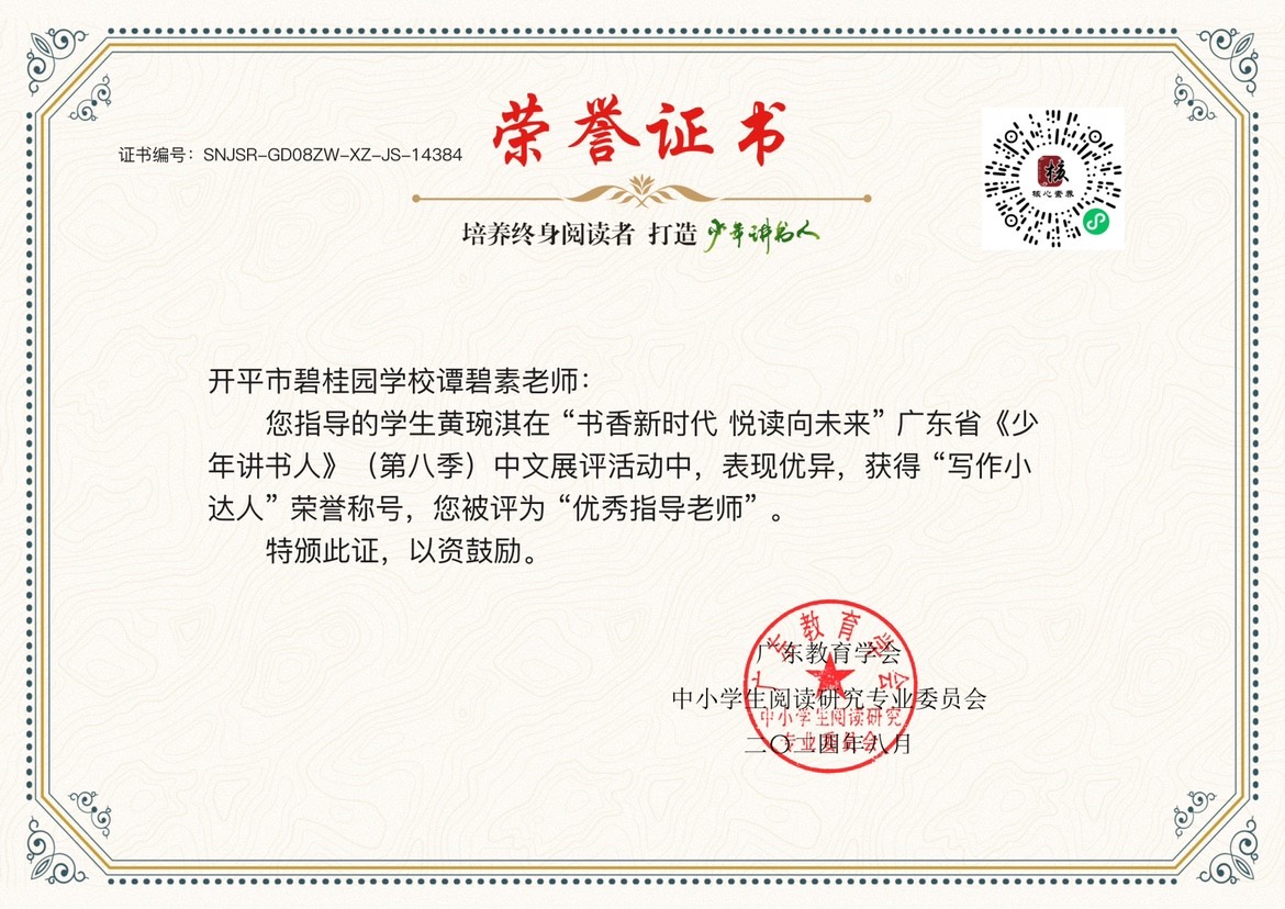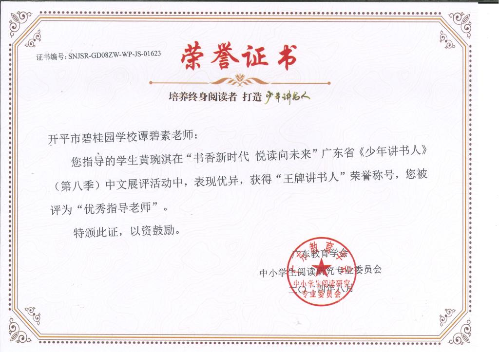 王牌讲书人 黄琬淇 优秀指导老师:谭碧素
