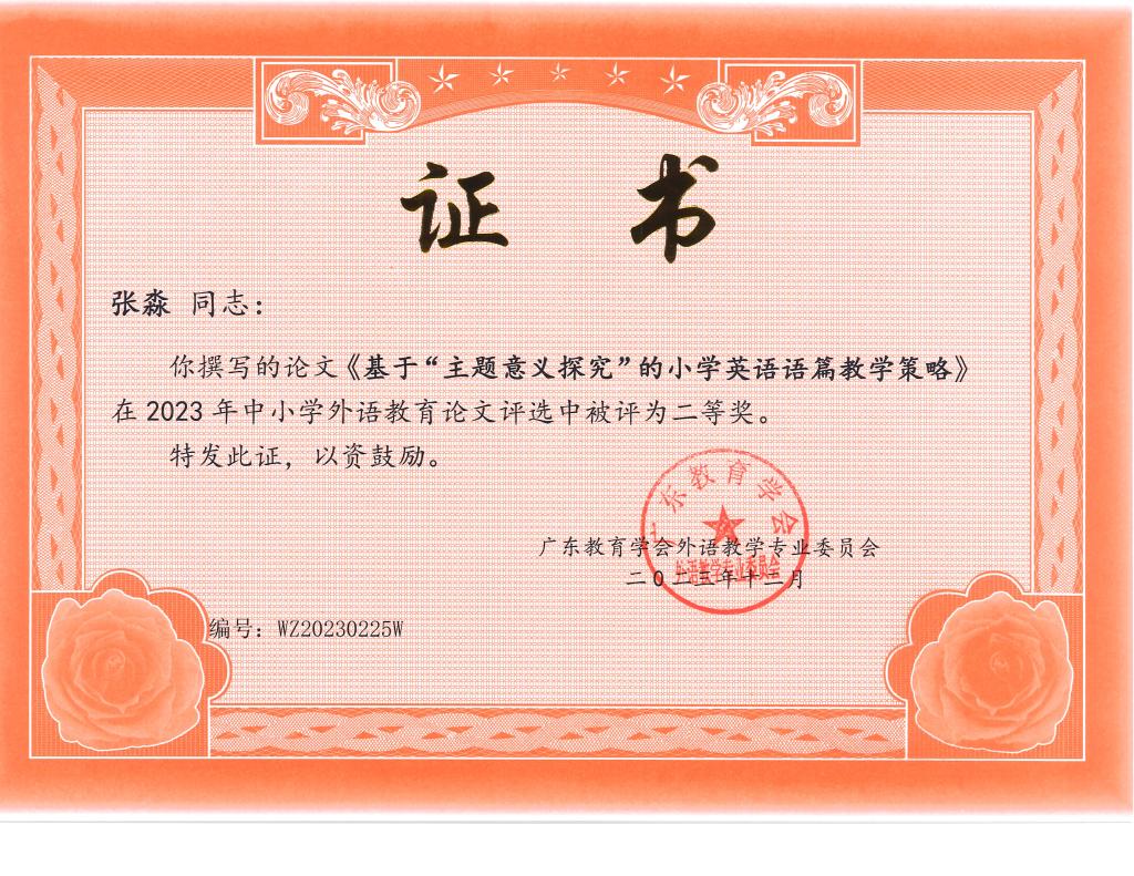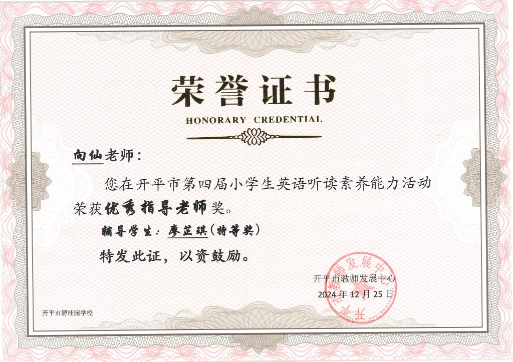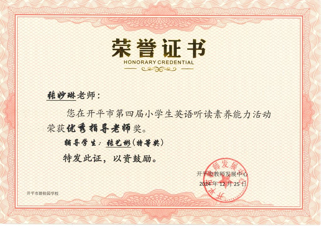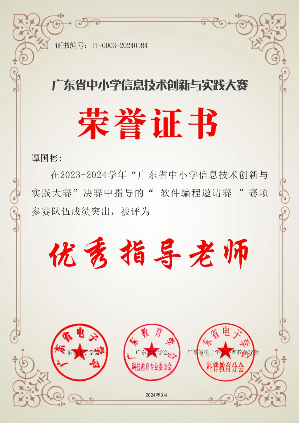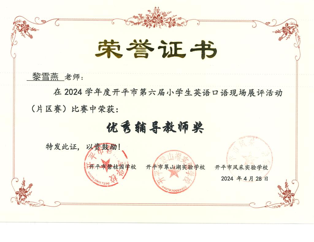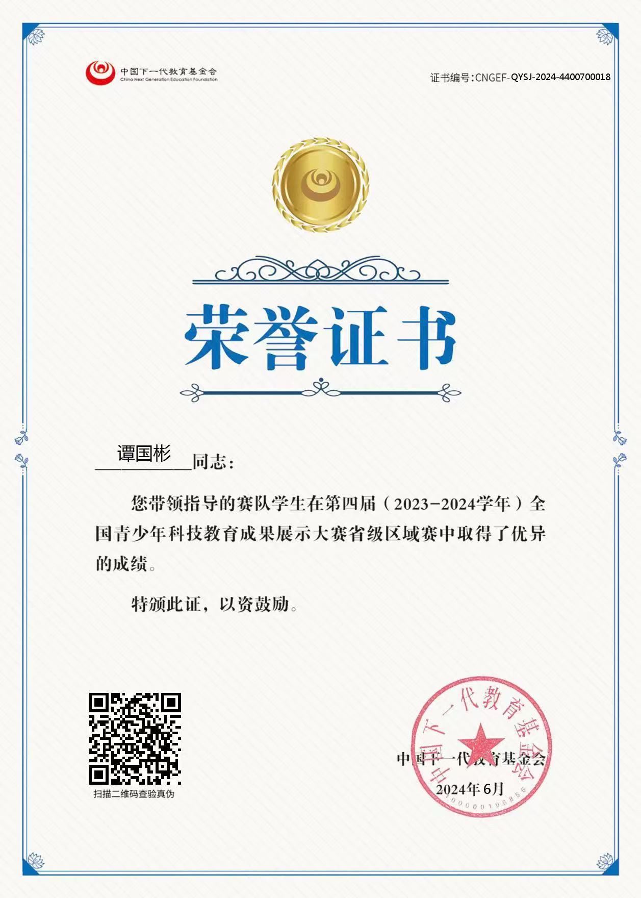 优秀指导团队奖 谢淑冰 陈乔燕 黄转好 谢翠梨