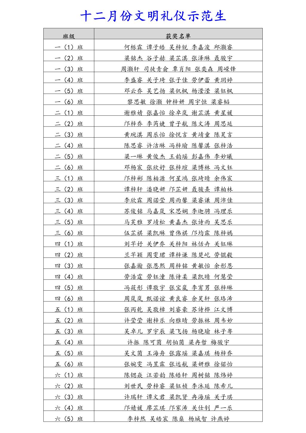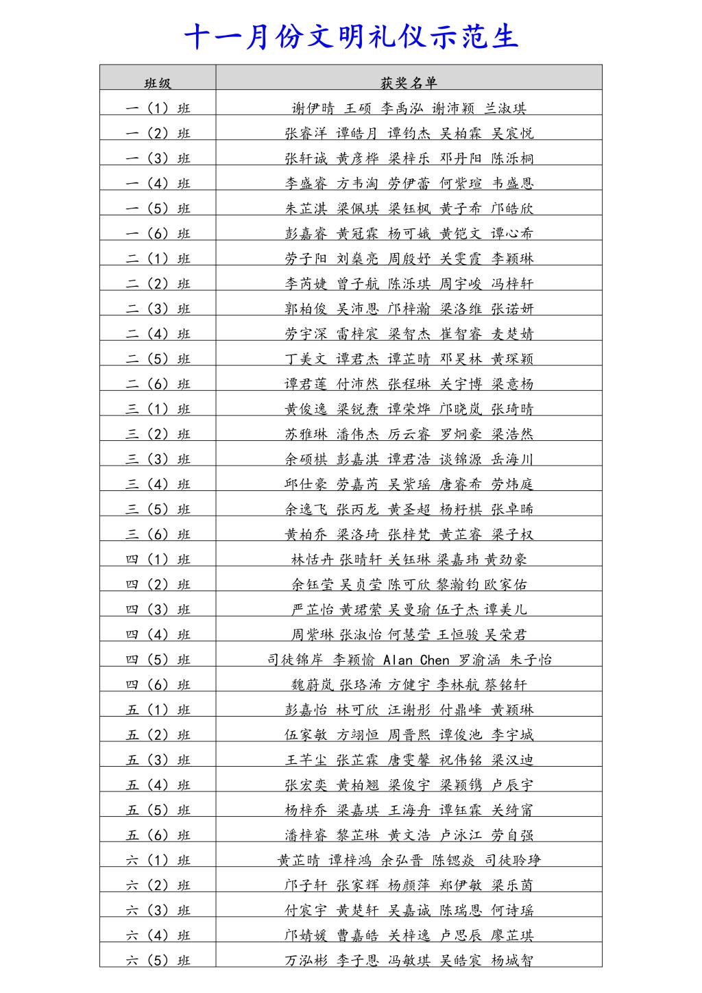 付宸宇 关梓逸 黄柏翘 黄子轩 邝佑蓝 邝佑谦 劳锟毅 劳梓骏 劳梓睿 梁凯贤 吴昊骏 杨泽均 张颖阳 张卓琛