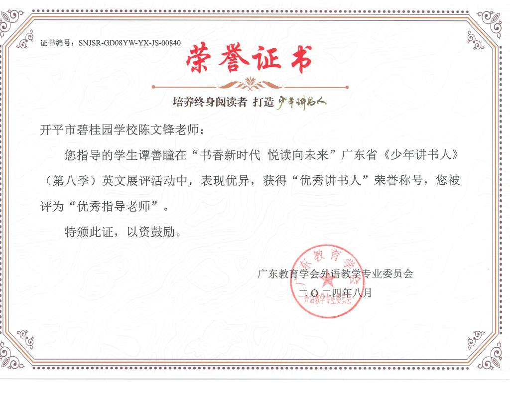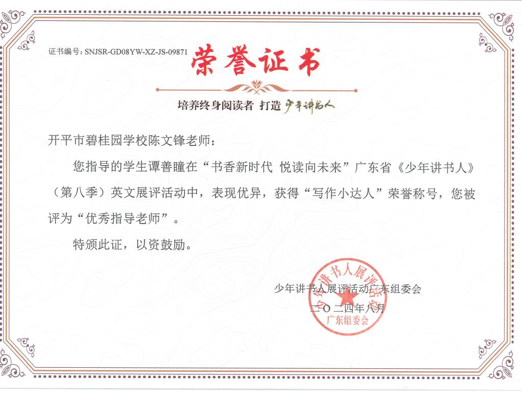 优秀讲书人 谭善瞳 优秀指导老师:陈文锋