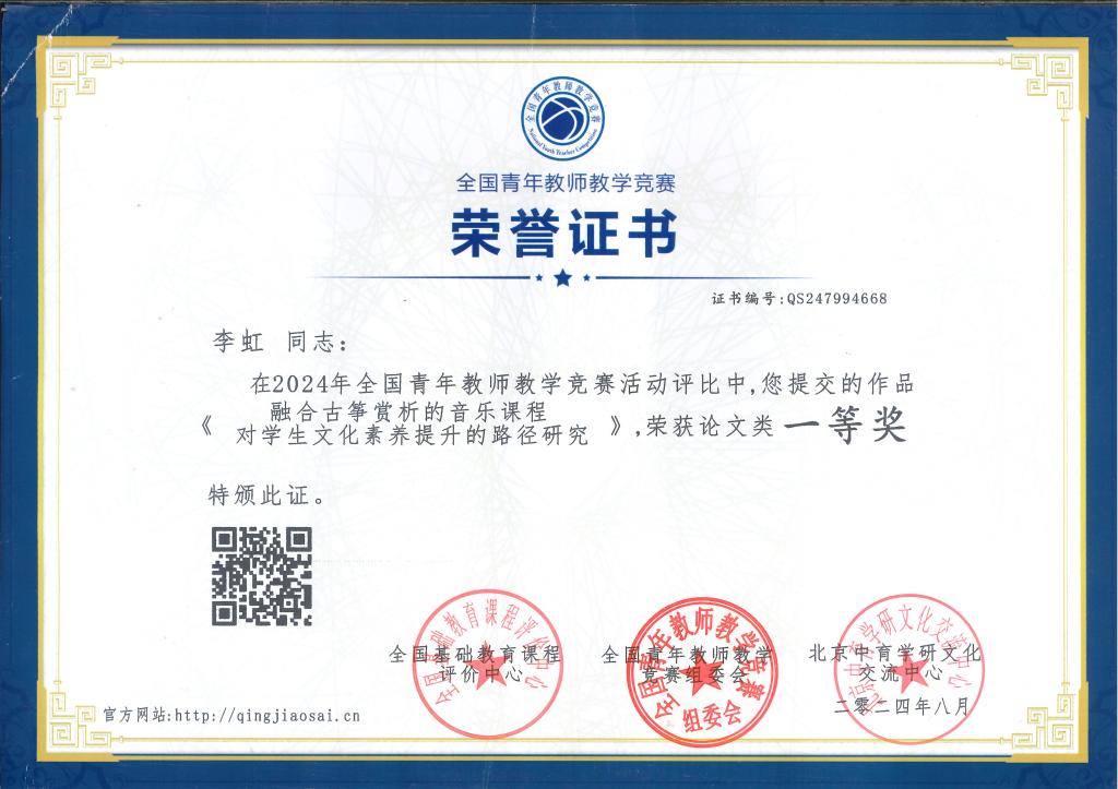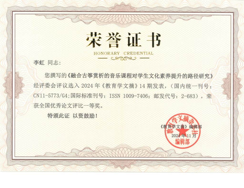 《中小学校中华优秀传统文化艺术传承创新——以古筝文化教育为例》 二等奖 李虹 李秀婷