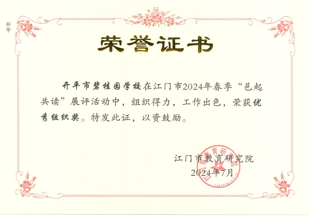 江门市2024年春季“邑起共读”展评活动 优秀组织奖