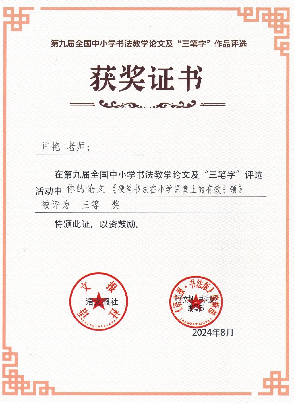 2024年开平市第六届“日兴杯”中小学生硬笔书法比赛