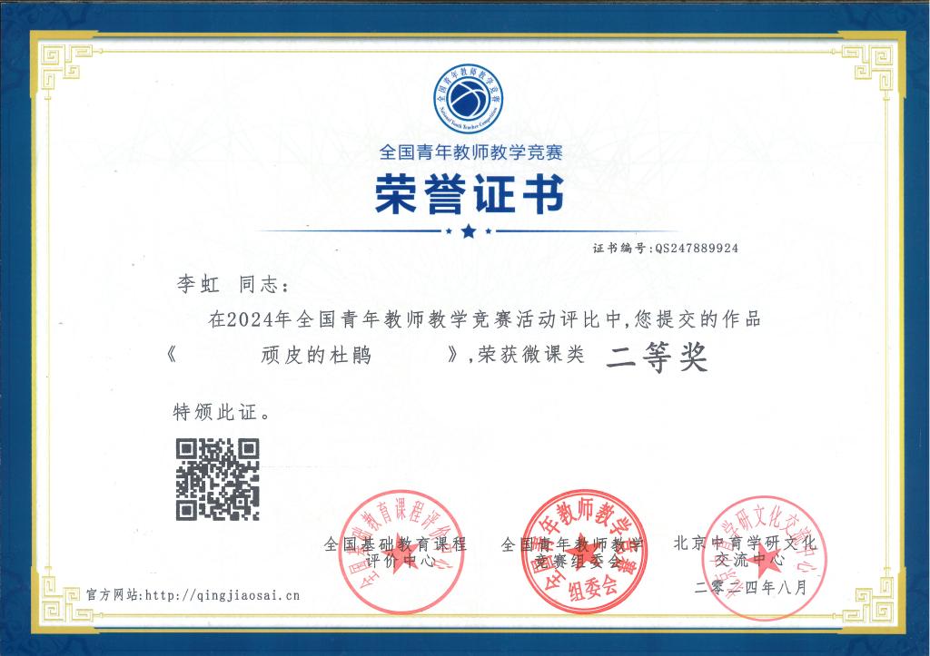 《中小学校学生艺术社团及实践工作建设》 二等奖 李虹 李秀婷