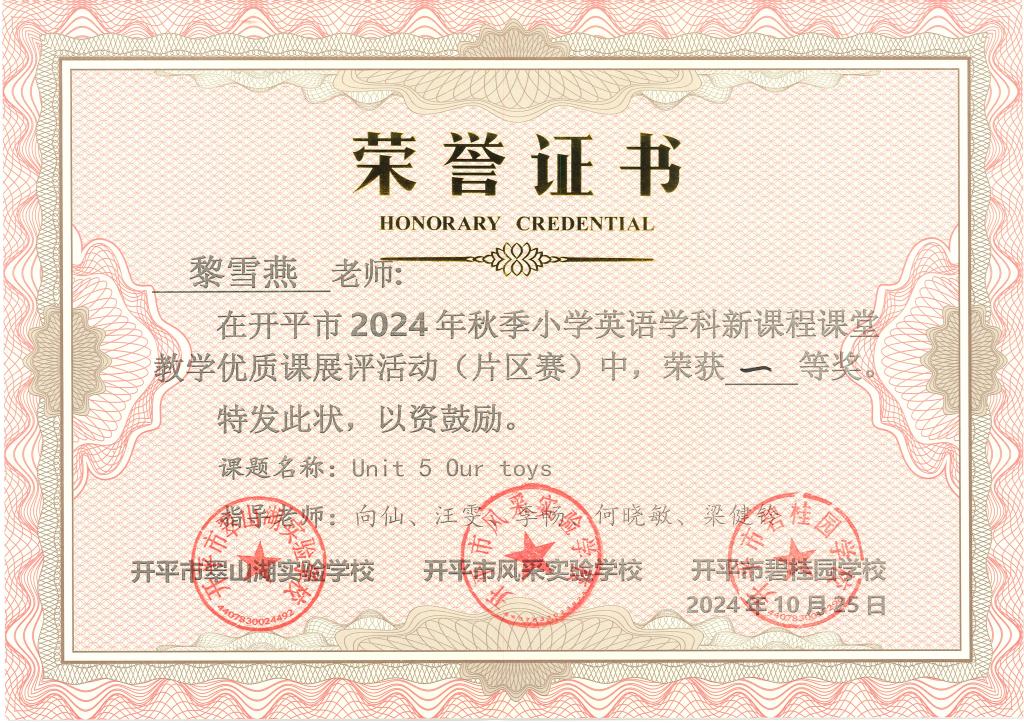 开平市2024年小学英语学科新课程课堂教学优质课展评活动