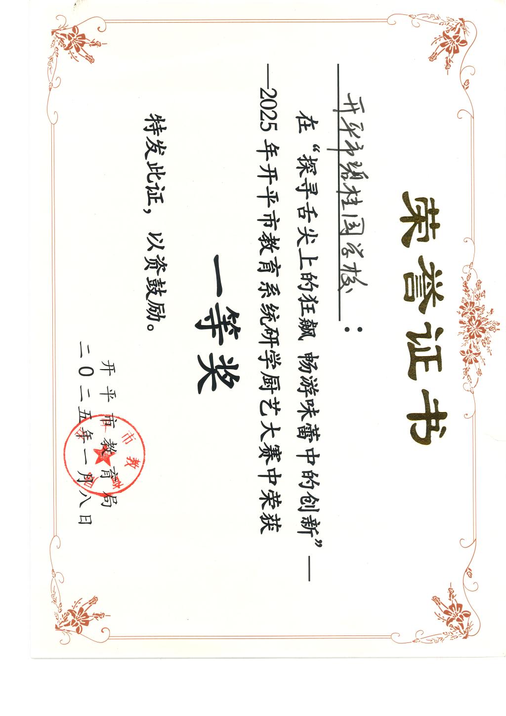 “探寻舌尖上的狂飙 畅游味蕾中的创新”——2025年开平市教育系统研学厨艺大赛 一等奖