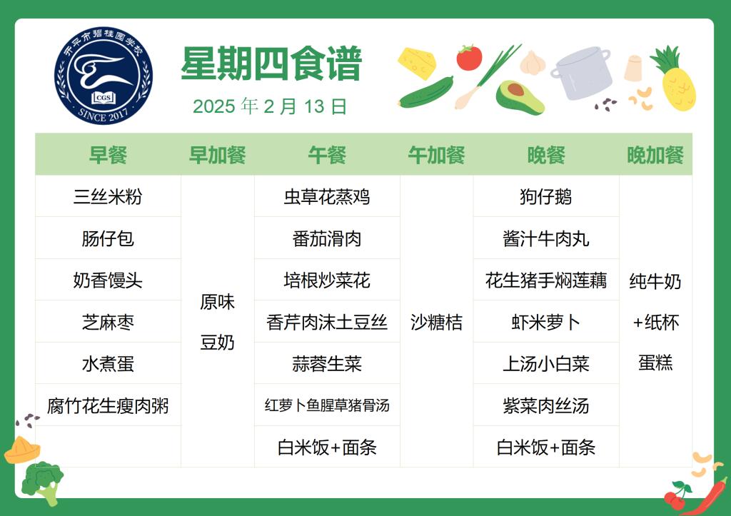 2024-2025第二学期开平市碧桂园学校第一周食谱