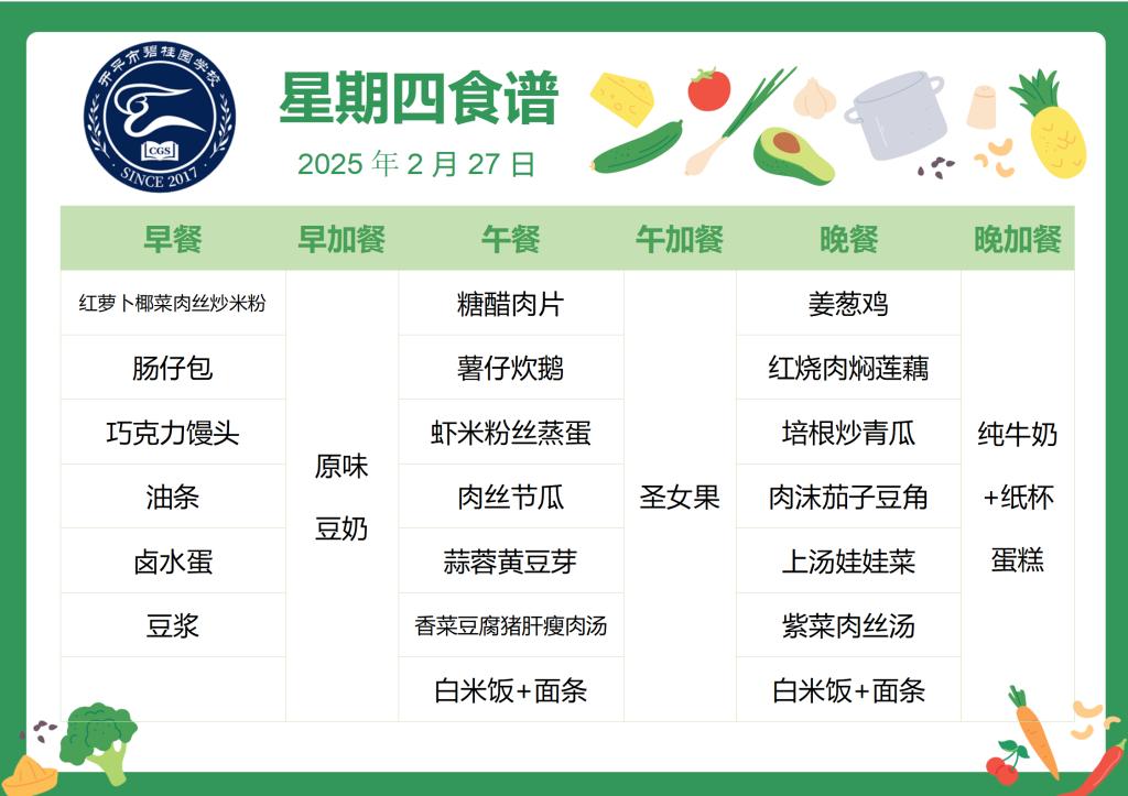 2024-2025第二学期开平市碧桂园学校第三周食谱