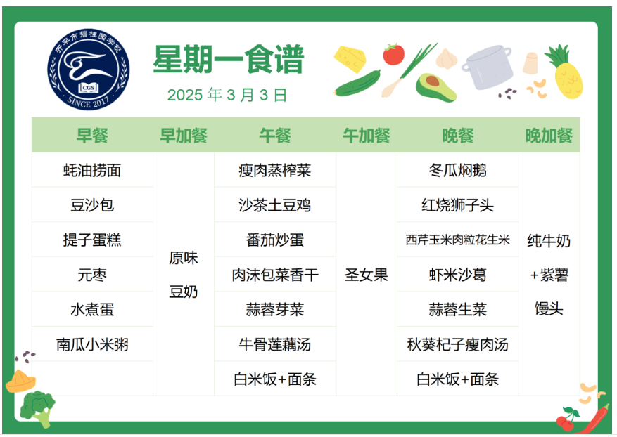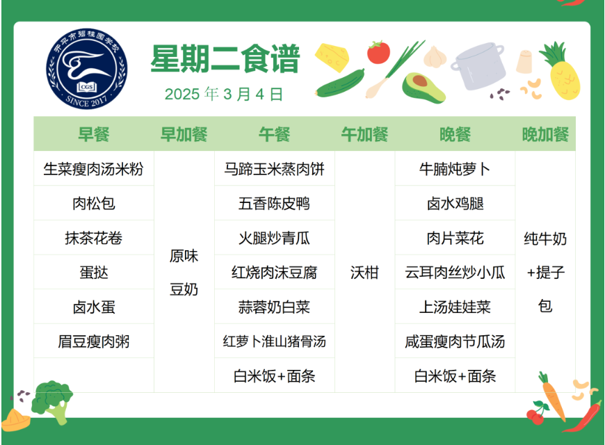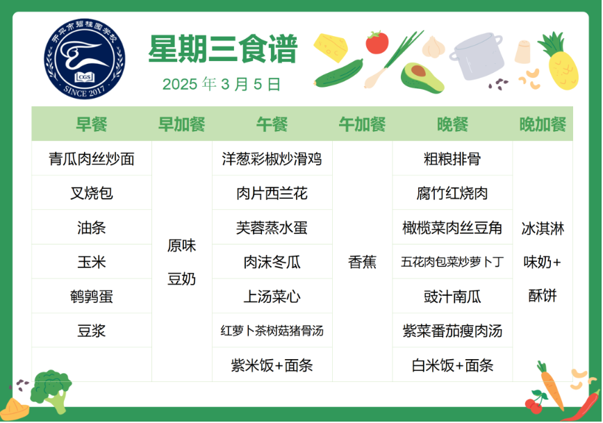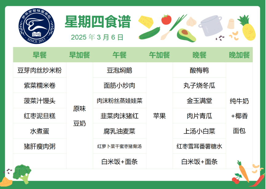 开平市碧桂园学校第四周自助餐食谱