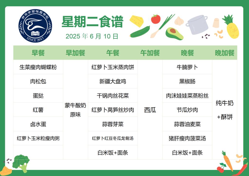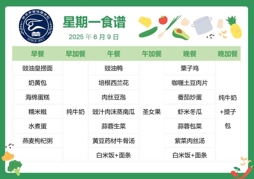 开平市碧桂园学校第十八周学生菜谱