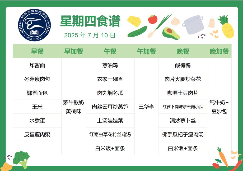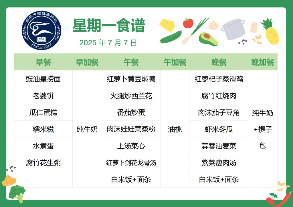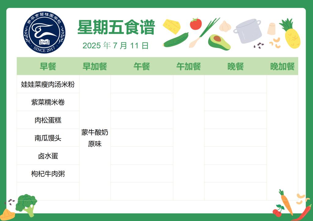 开平市碧桂园学校第二十二周学生菜谱
