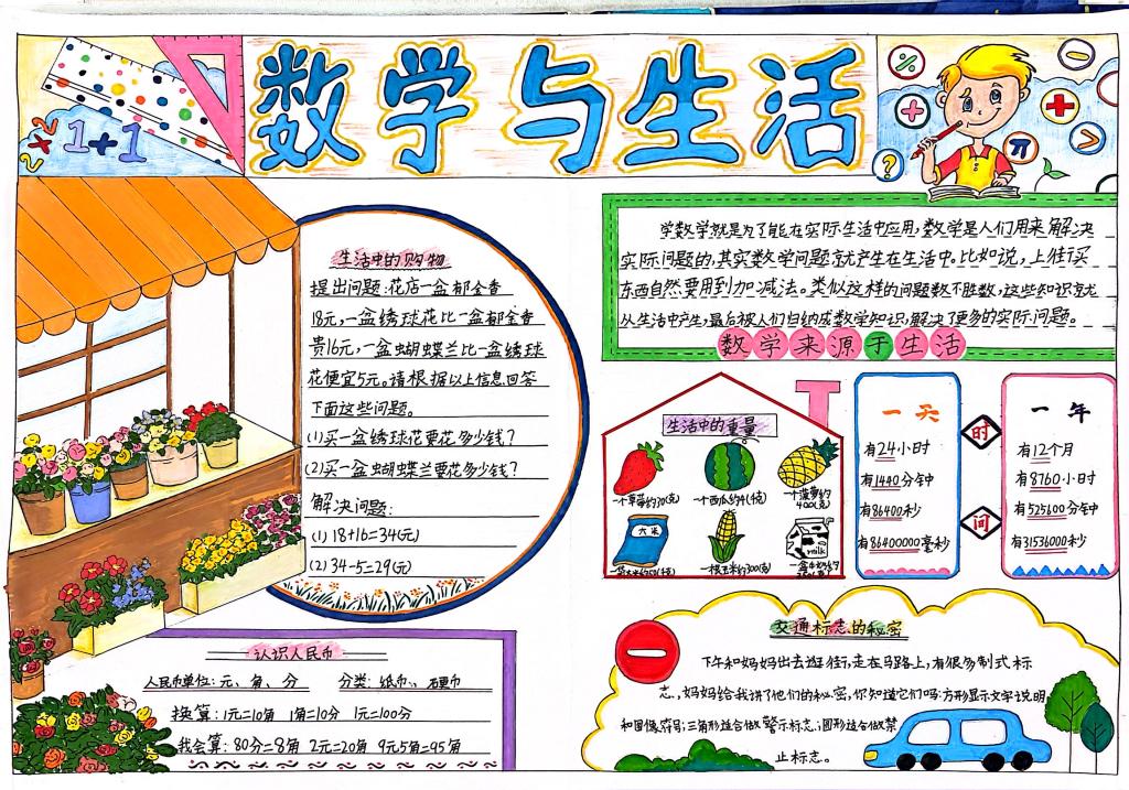 创意数学小报:围绕单元主题精心设计,图文并茂,充分展示了学习成果与创意。