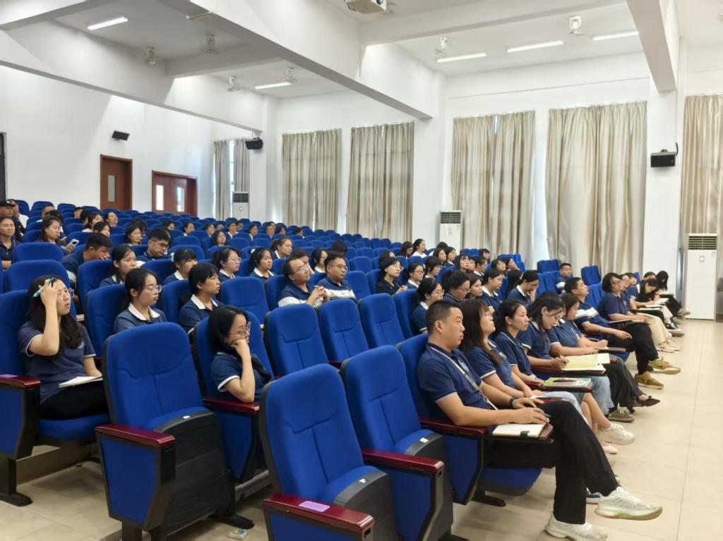 云天收夏色,木叶动秋声。2025年秋季开学在即,为扎实做好新学期开学准备,确保开学各项工作顺利、有序地开展,8月29号上午,全体教职员齐聚我校学术报告厅参加开学工作部署会议,蓄力新学期。本次会议由朱小琳副校长主持,由谭家文校长在会上作开学工作报告。