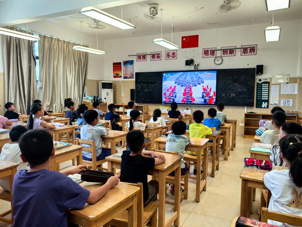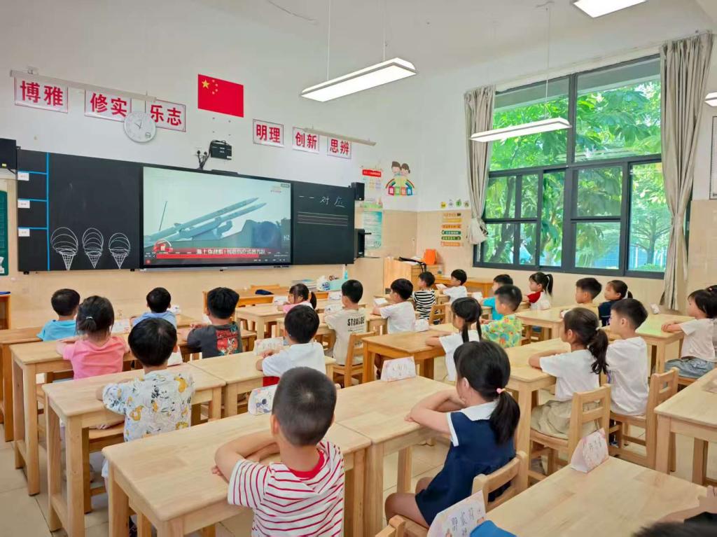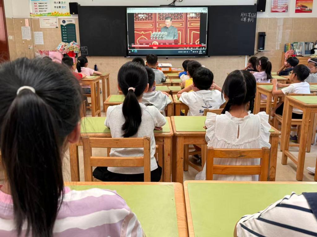 为深入贯彻党的教育方针,全面落实立德树人根本任务,引导我校广大学子坚定理想信念、厚植家国情怀、赓续红色血脉,深刻认识到中国人民抗日战争的伟大意义、中国人民抗日战争在世界反法西斯战争中的重要地位,树立学生“请党放心,强国有我”的远大志向,我校于9月3日上午,组织全校师生集中收看“纪念中国人民抗日战争暨世界反法西斯战争胜利八十周年阅兵仪式”现场直播。