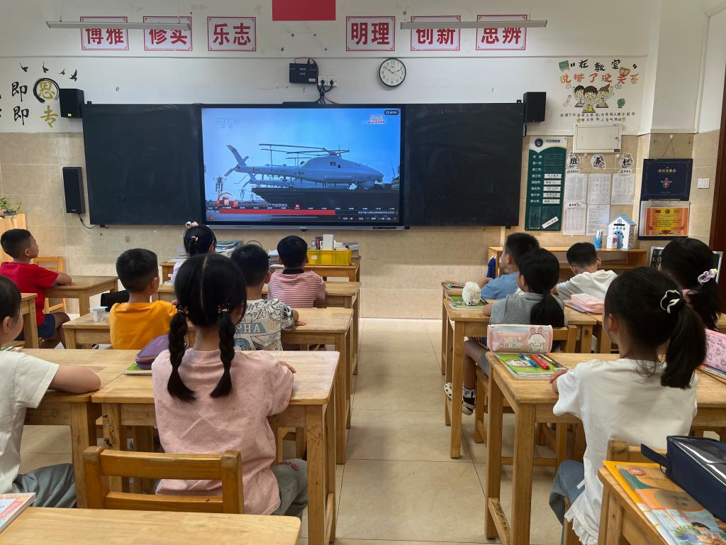 瞧!同学们坐直了身子,目不转睛地观看这盛况,还不时参与讨论,感叹着中国力量的强大!看,我们的国家,队伍整齐,这是纪律和合作的力量;军人昂首挺胸的背后,是保家卫国的信念;先进的装备是国家科技发展的成果。大阅兵不只是国防的展示,而是一种精神的传承!
