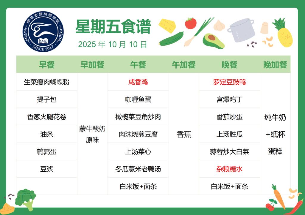 开平市碧桂园学校第二学期第6周食谱