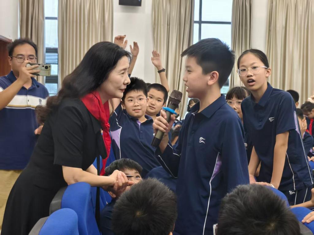 互动环节中,同学们的提问格外踊跃。曹文芳作家耐心解答了同学们关于阅读和写作方面问题,曹老师亲切的态度、实用的建议,让现场掌声此起彼伏。老师为同学签名赠书更是激发了同学们对阅读浓厚的兴趣,她用温暖笔触点亮孩子们的文学梦想,接过亲笔签名时孩子们的雀跃身影,成为现场最动人的风景。