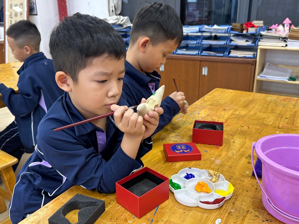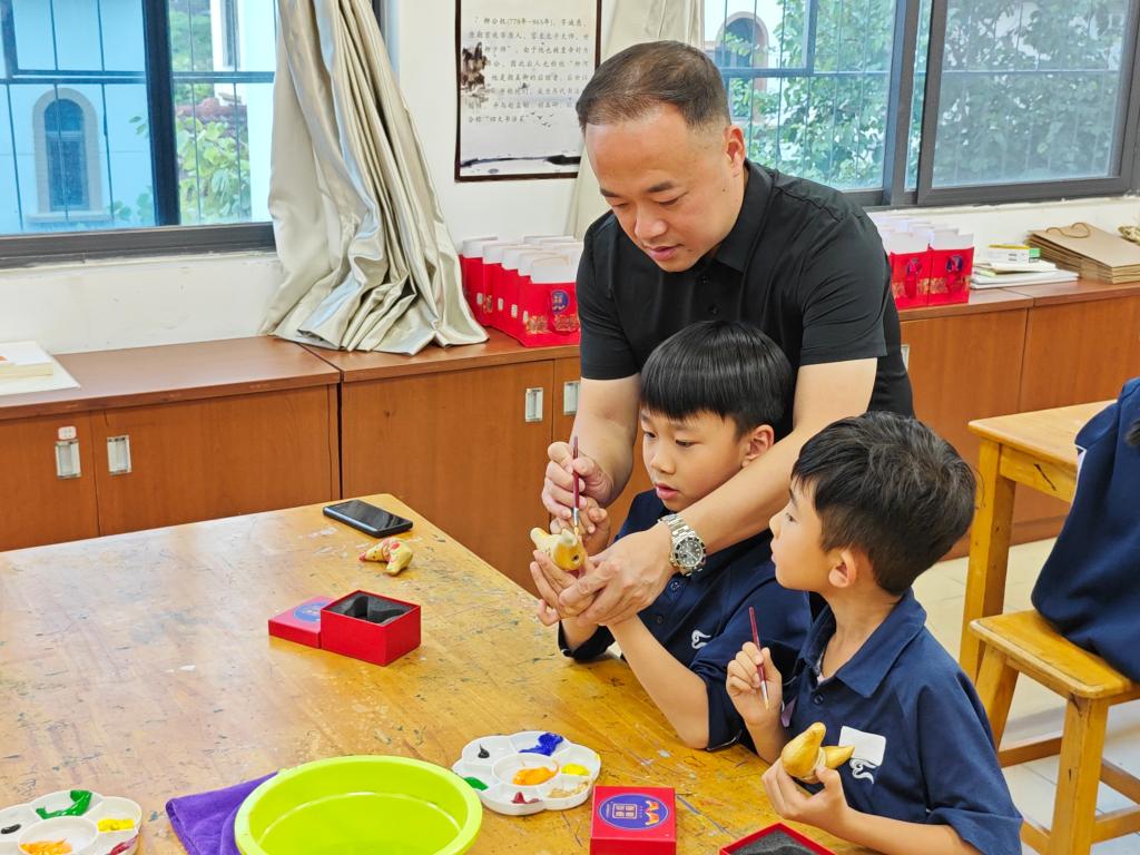 活动现场,冯永勇老师通过生动讲解与实物展示,带领孩子们探寻镇濠泥鸡的起源传说、发展历程,细致拆解选泥、塑形、晾晒、彩绘等核心制作工序,让孩子们直观感受这项传统技艺的匠心魅力。