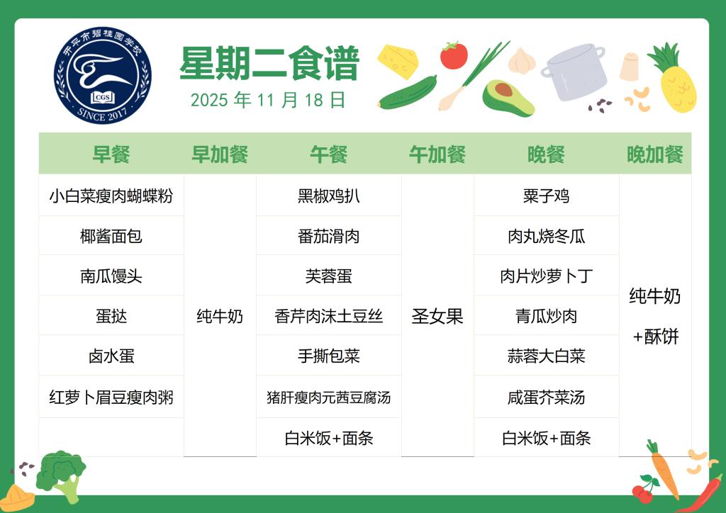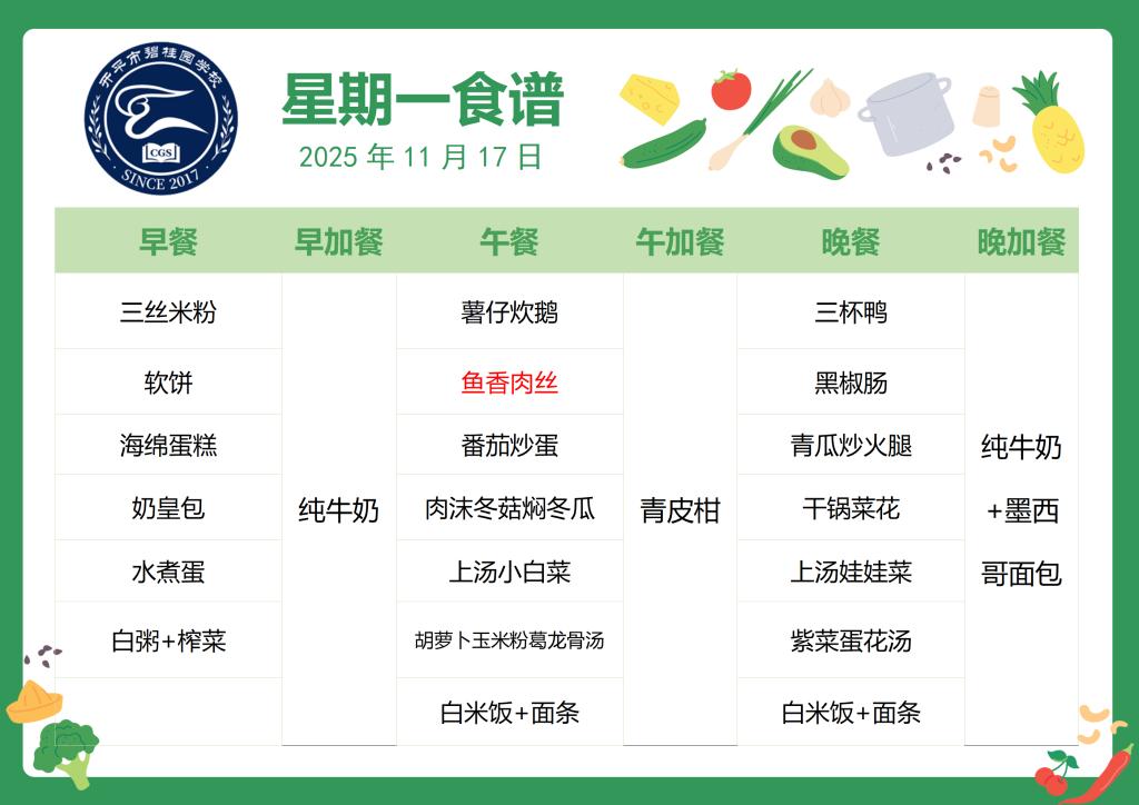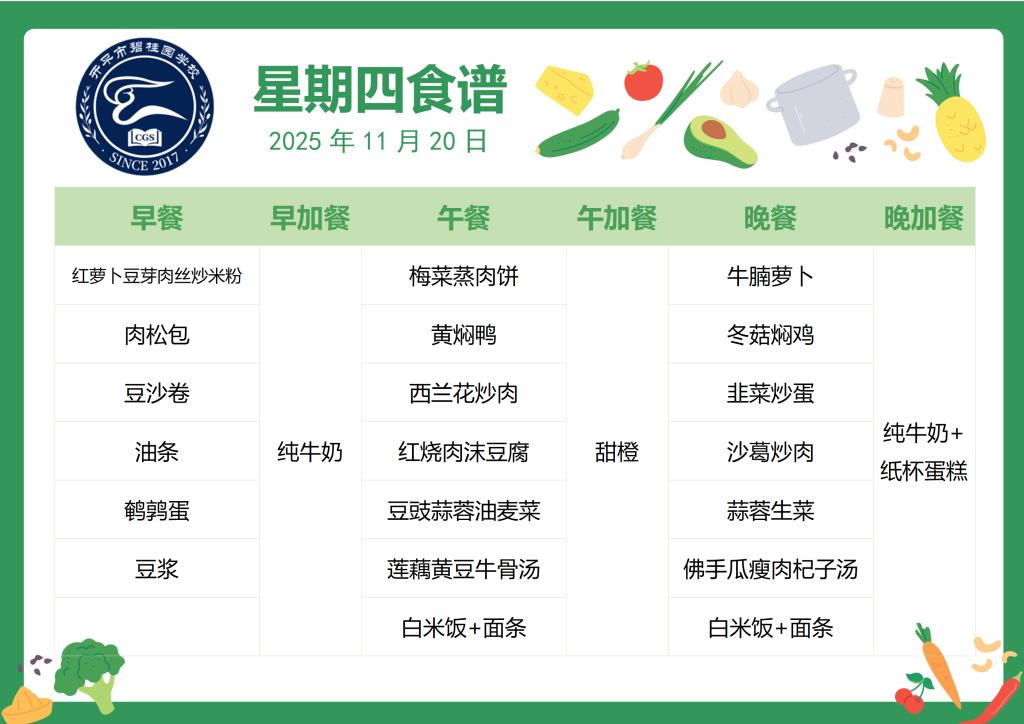 开平市碧桂园学校2025-2026第一学期第12周食谱