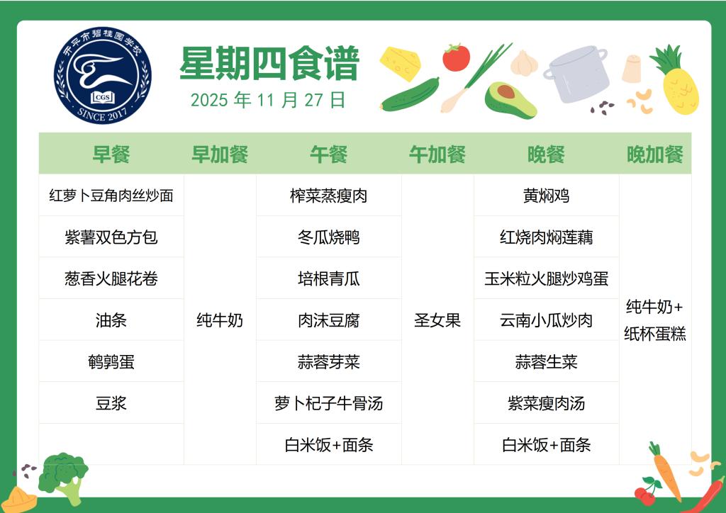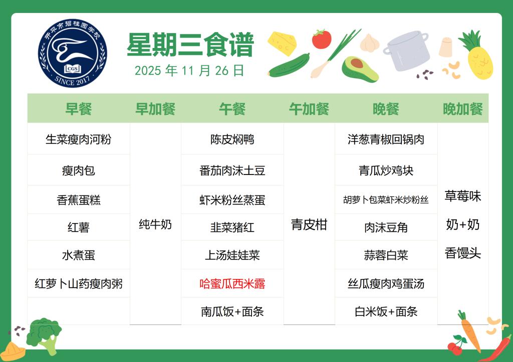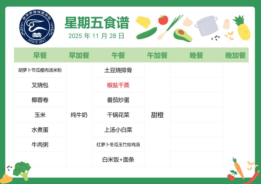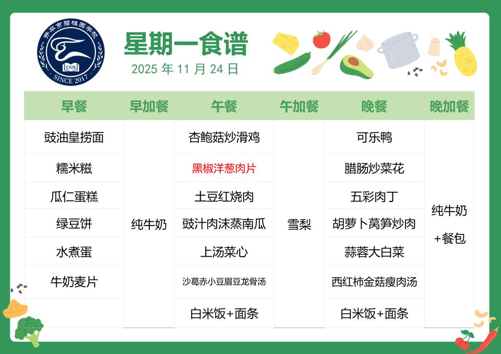 开平市碧桂园学校2025-2026第一学期第13周食谱