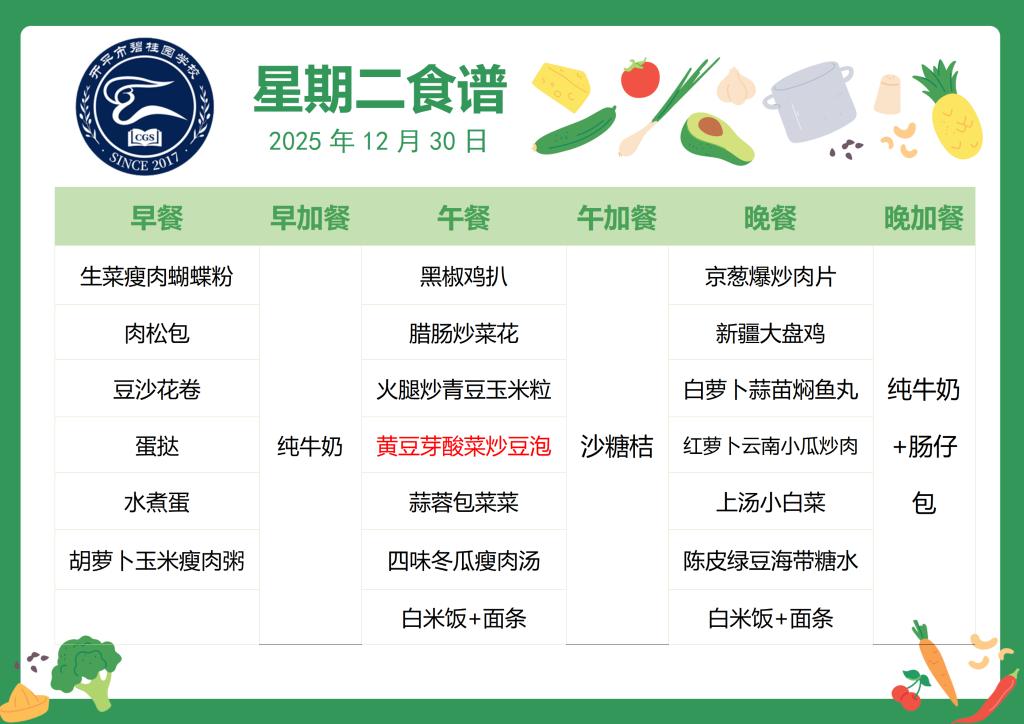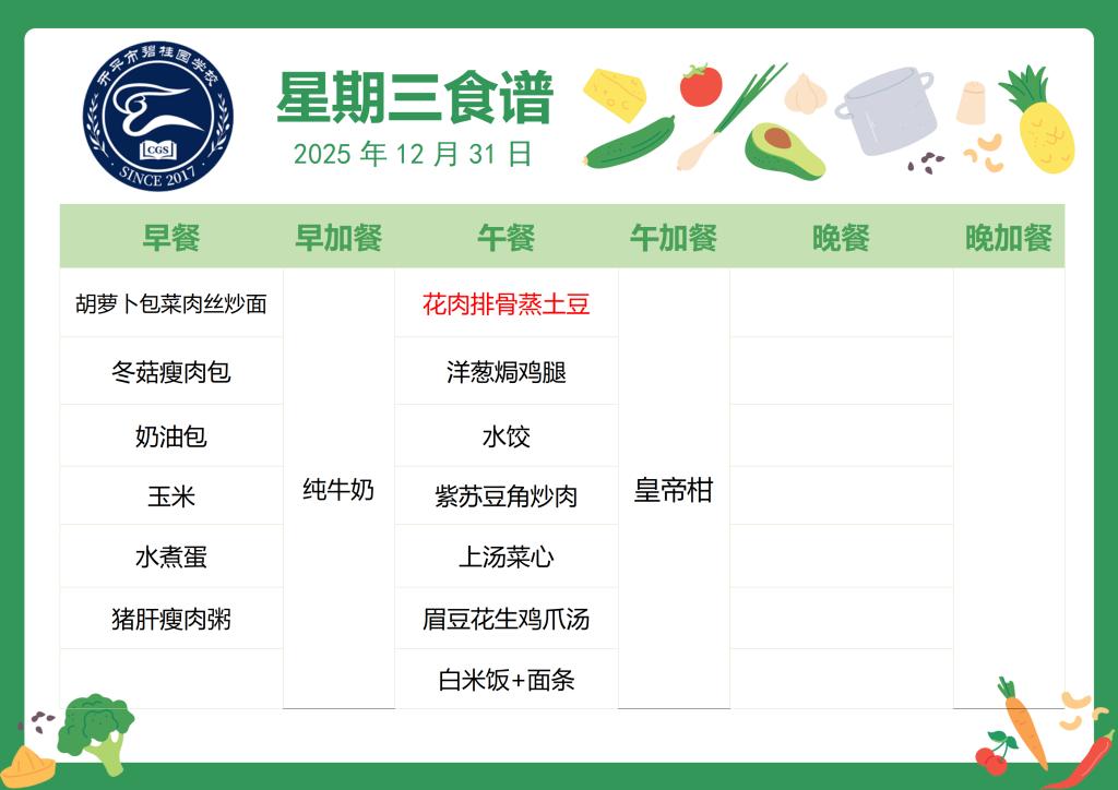 2025-2026第一学期第18周食谱