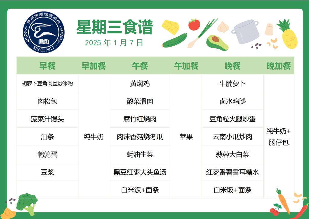 2025-2026第一学期第19周食谱
