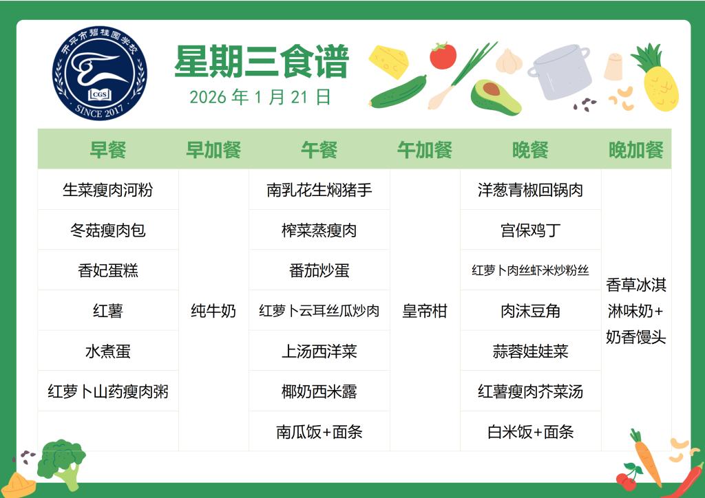2025-2026第一学期第21周食谱