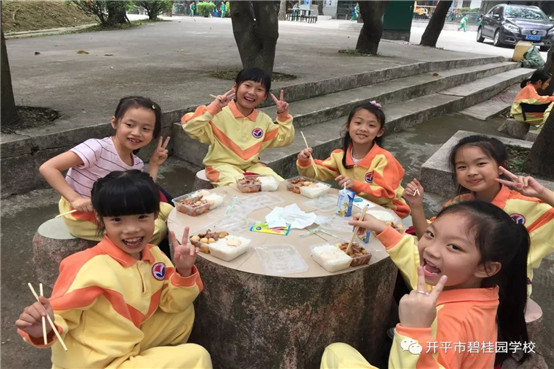 午餐时间,孩子们吃得津津有味,美味在舌尖流淌。饱餐过后,孩子们自觉地收拾垃圾,快速有序。