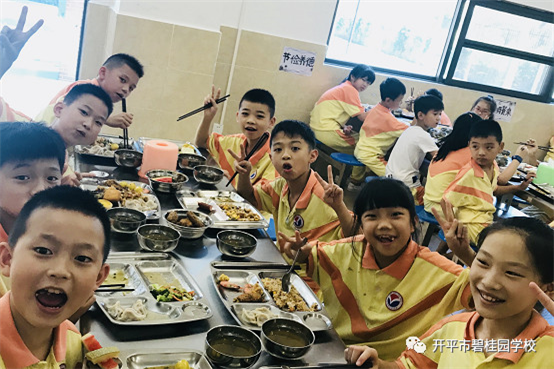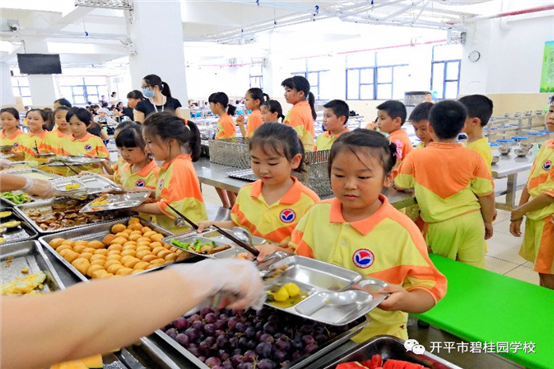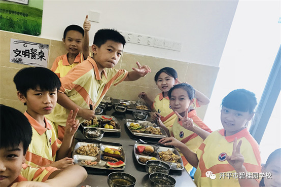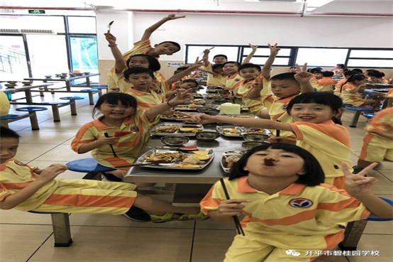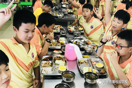 学生们在享受美食的同时,也培养了自理、自立、自律的能力。餐后,学生秉承我校的优良传统,自主自觉地倒好残渣,放好餐盘和碗筷。